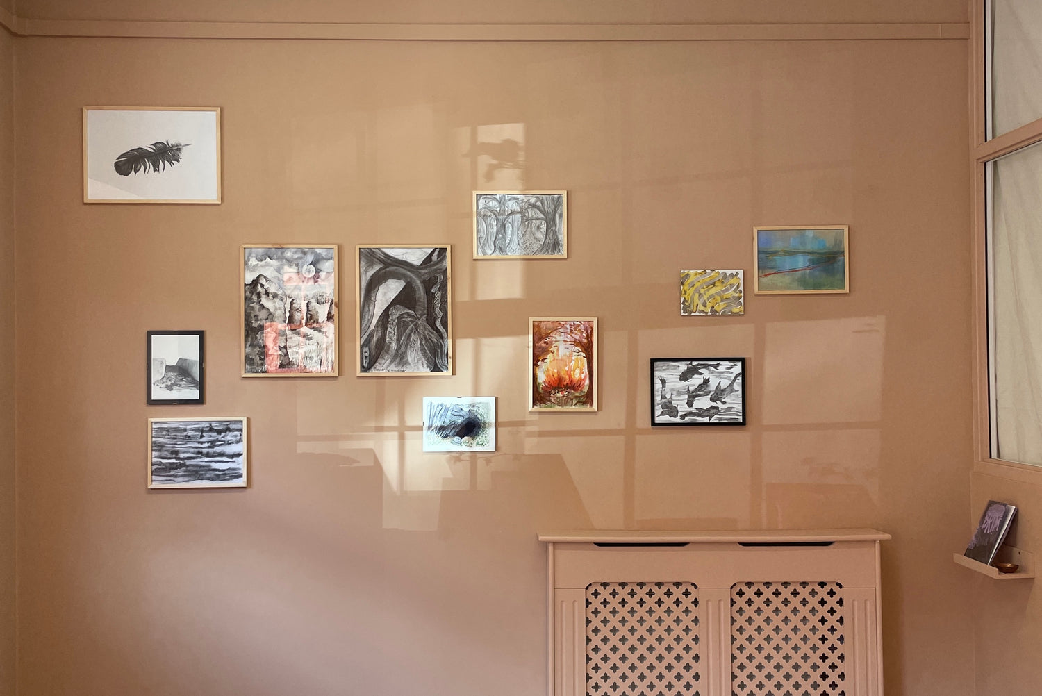 Summer 2024 group show of paintings and drawings informed by the surrounding Wessex landscape and its folklore. Often made using colour from plant sources or historical palettes, the art works covered mythology, underworlds, gardens, celestials view and automatic drawing.